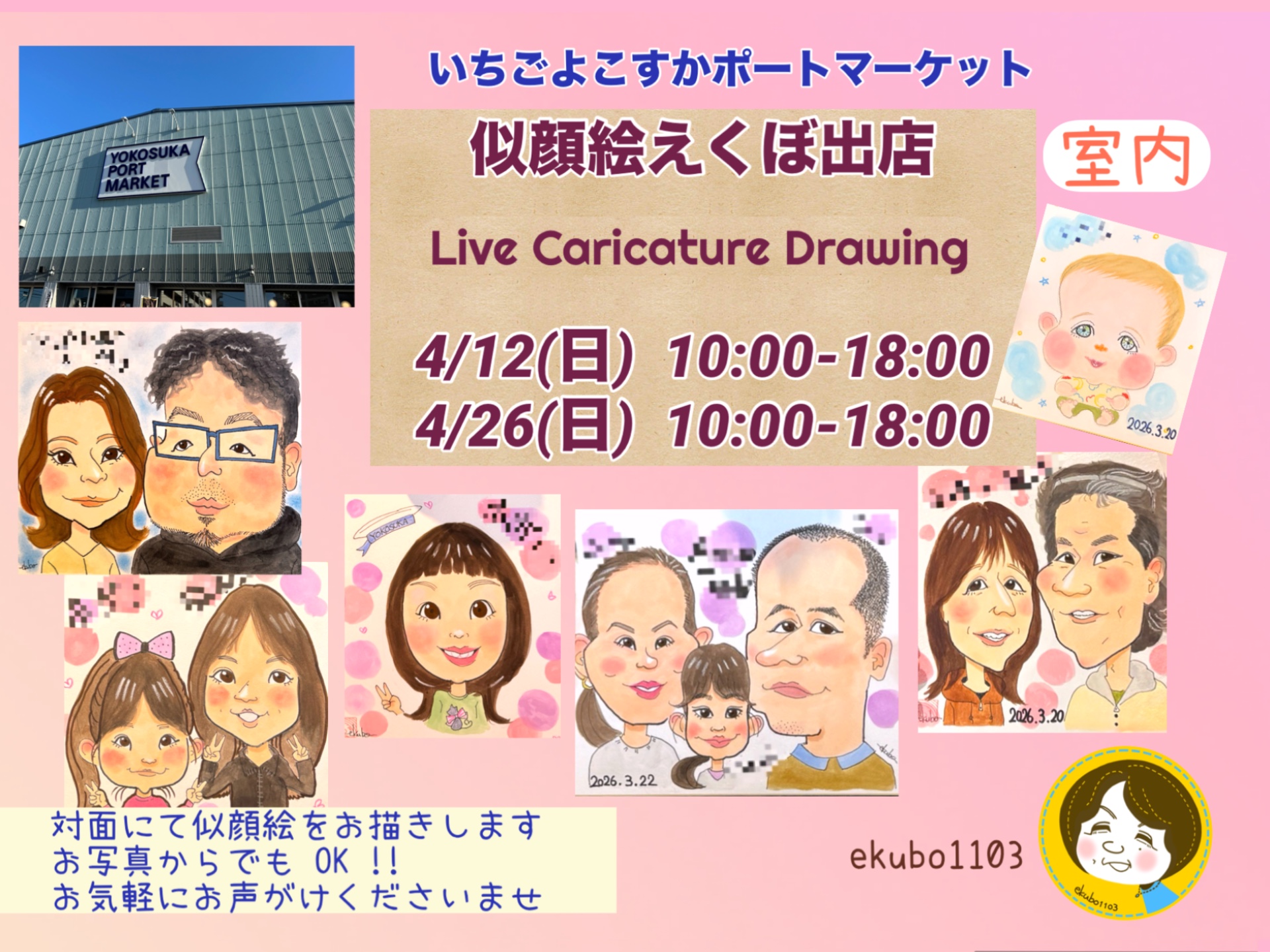 【4/12(日)、26(日)】似顔絵屋さんが出店