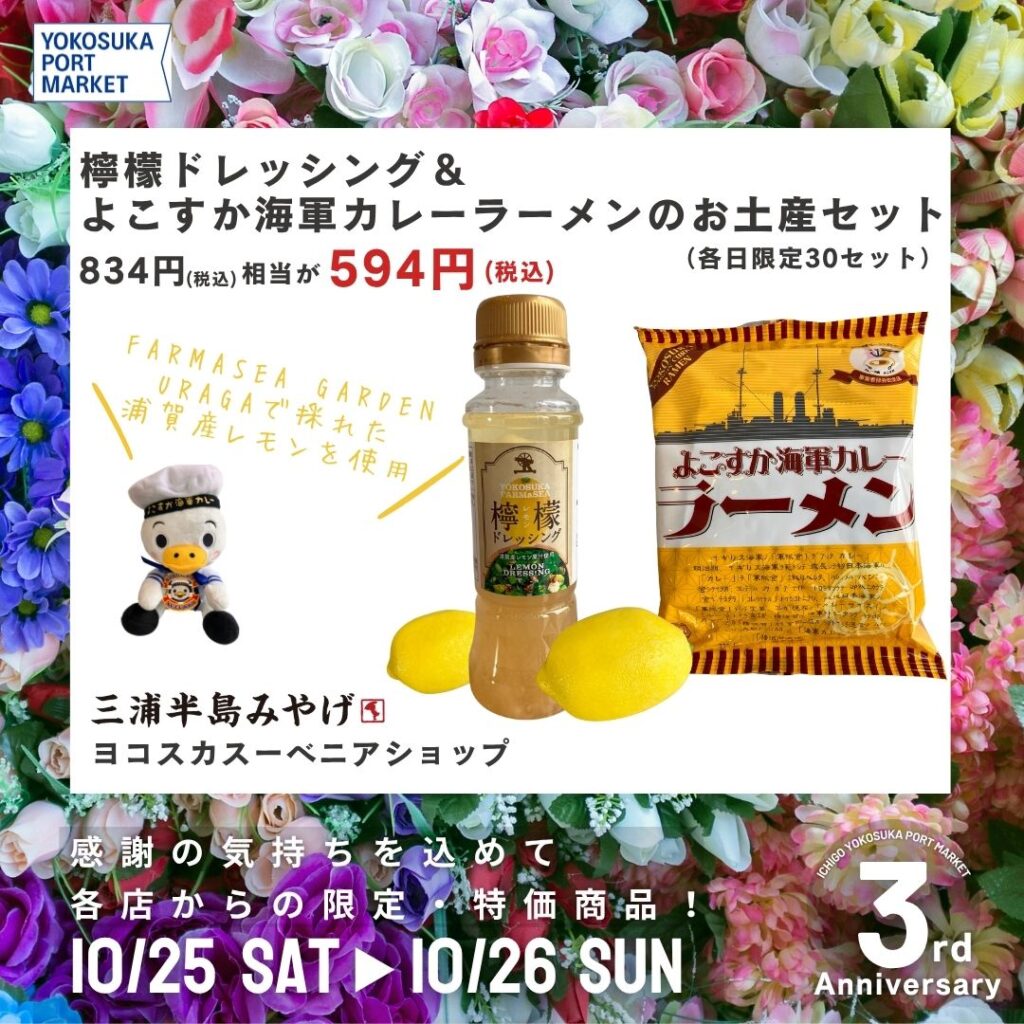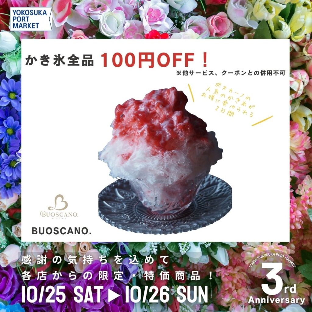 いちご よこすかポートマーケットが3周年!日頃のご愛顧に感謝を込めて、三浦半島の名店たちがとっておきのオトクや限定商品をご提供します!この他にもまだまだ魅力的な企画がございますので、近日中にこちらのHPで更新予定です!日程:10/25(土)、10/26(日)