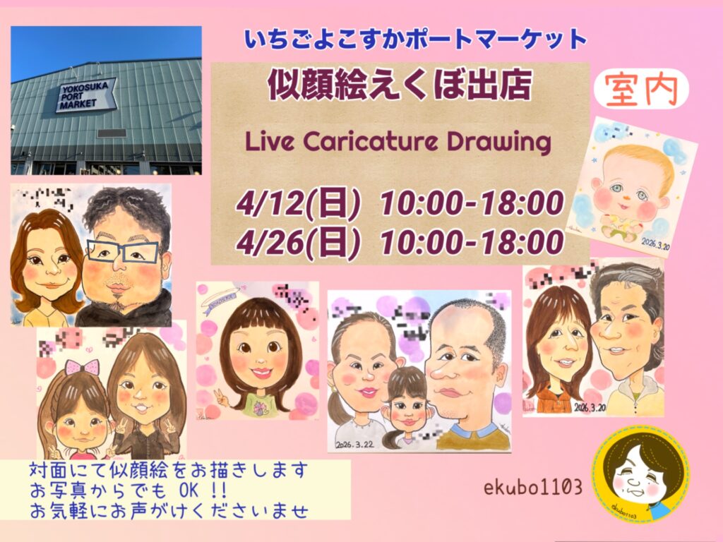 横須賀市を中心に活動されるえくぼ1103による似顔絵屋さんが出店いたします。