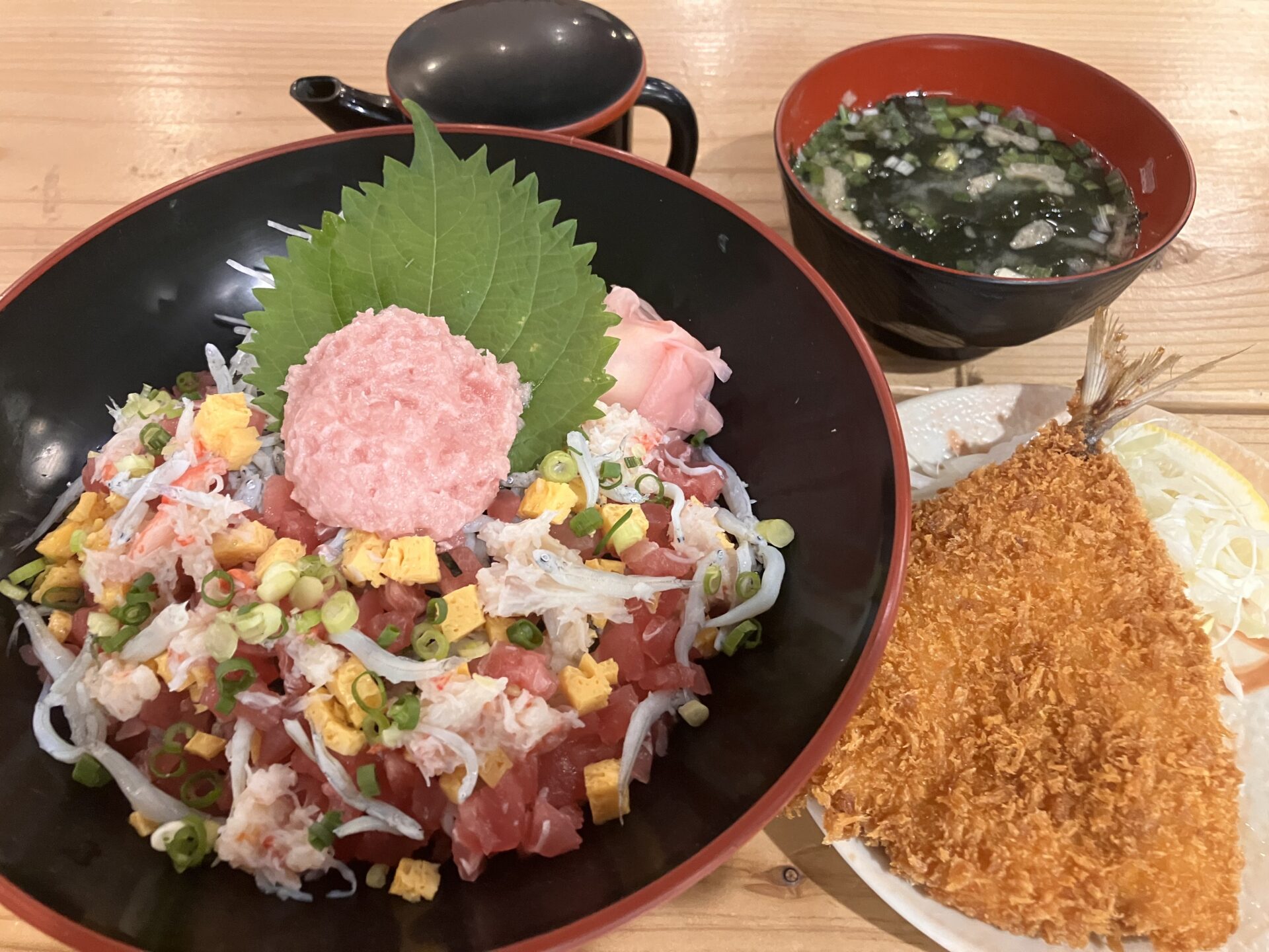 旬の鮮魚と三浦半島の選りすぐりの食材を使った「船主丼」は、だし汁でシメのお茶漬けまで2度美味しく楽しめます。